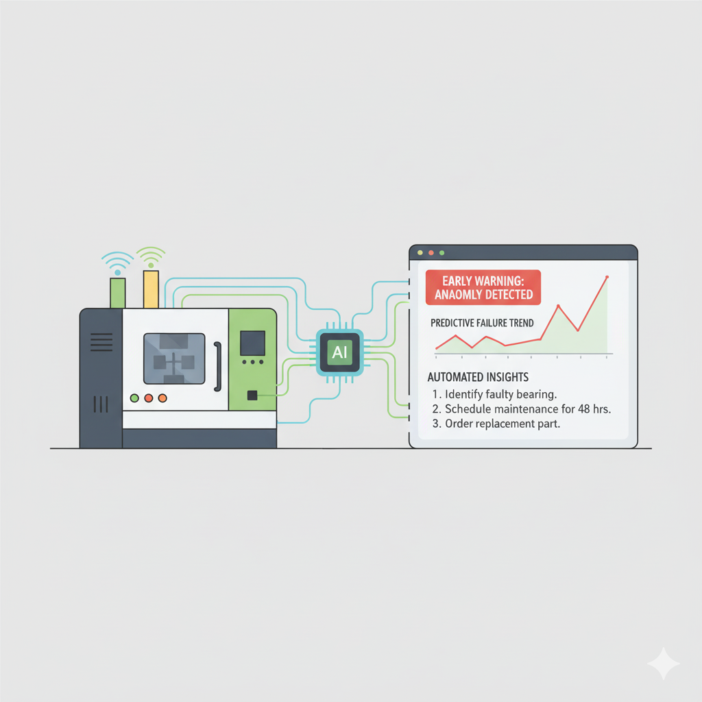 When a machine fails suddenly, the damage is usually bigger and more expensive. AI helps catch small problems early—like unusual vibration or heat—so the fix is cheaper and quicker. This reduces both maintenance expenses and emergency repair costs.